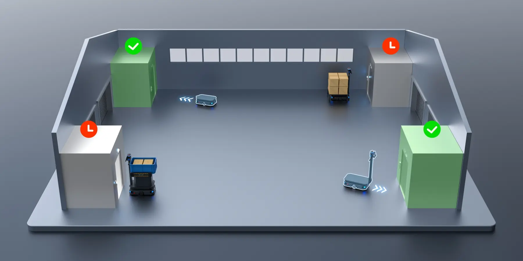 - Controllo autonomo degli ascensori, che permette ai robot di cambiare piano senza assistenza umana per consegne in tutta la struttura.